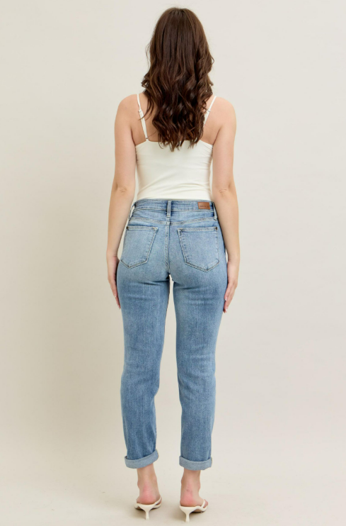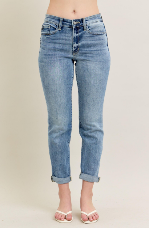 Judy Blue Mid Rise Bleach Cuffed Boyfriend Fit