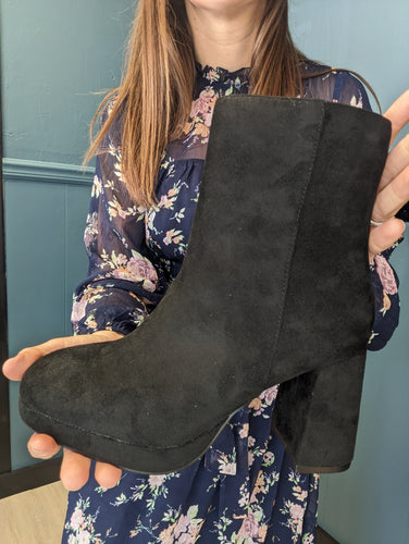 Corkys Slug Bug Platform Bootie in Black Faux Suede