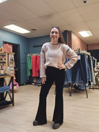 KanCan High Rise Ribbed Velvet Flare Pant - Black