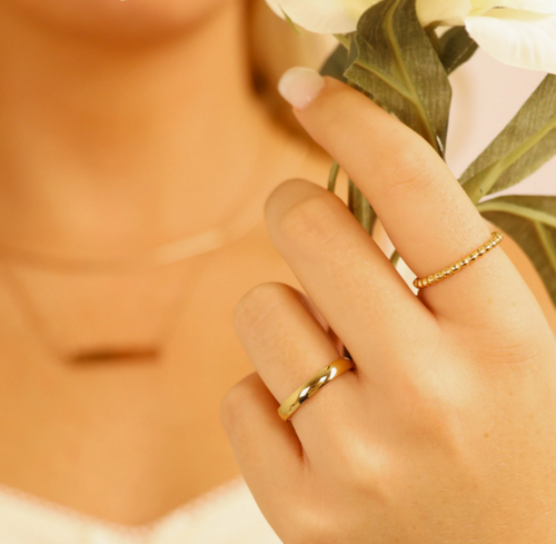 Highly Polished Rounded 18K PVD Coated Gold Stainless Steel Ring - 2mm Band - Various Sizes
