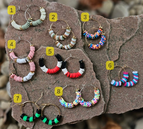 Hypoallergenic Clay Beaded Wire Hoop Earrings - 18K Gold PVD Stainless Steel - Various