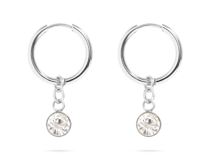 12mm April Birthstone Dangle Huggie Hoop Earring - Gold + Silver