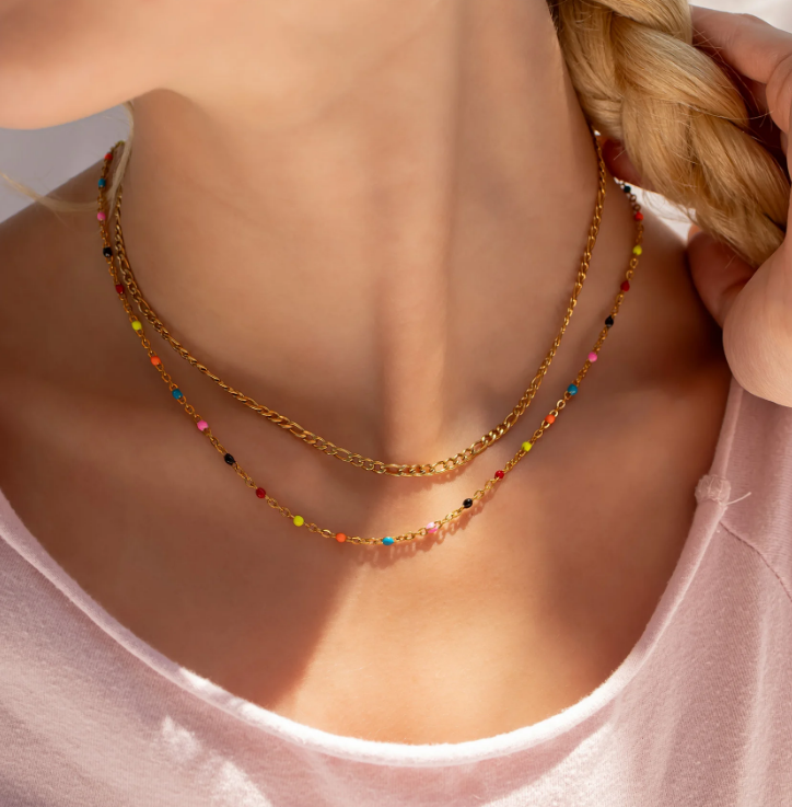 18K Gold PVD Stainless Steel Multi Confetti Chain Necklace