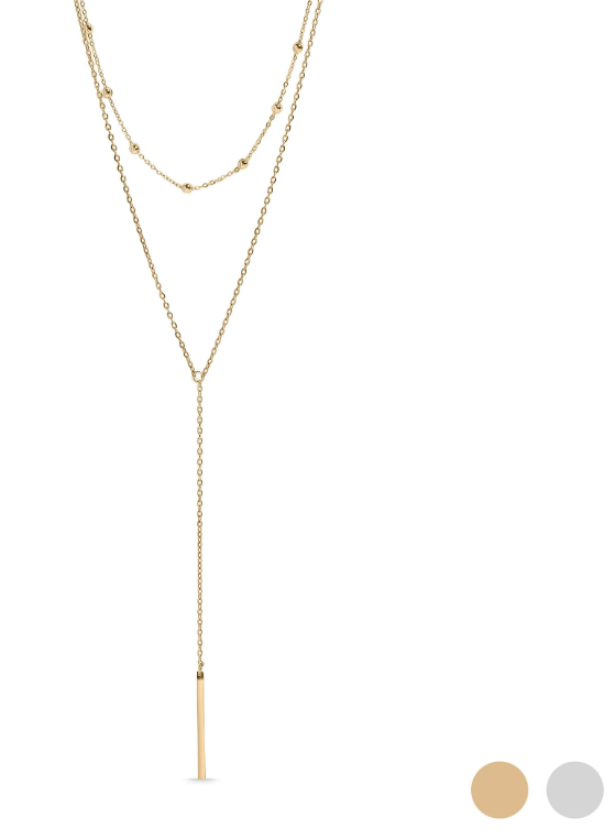 18K Gold PVD Stainless Steel Drop Bar Layered Lariat Necklace - Various
