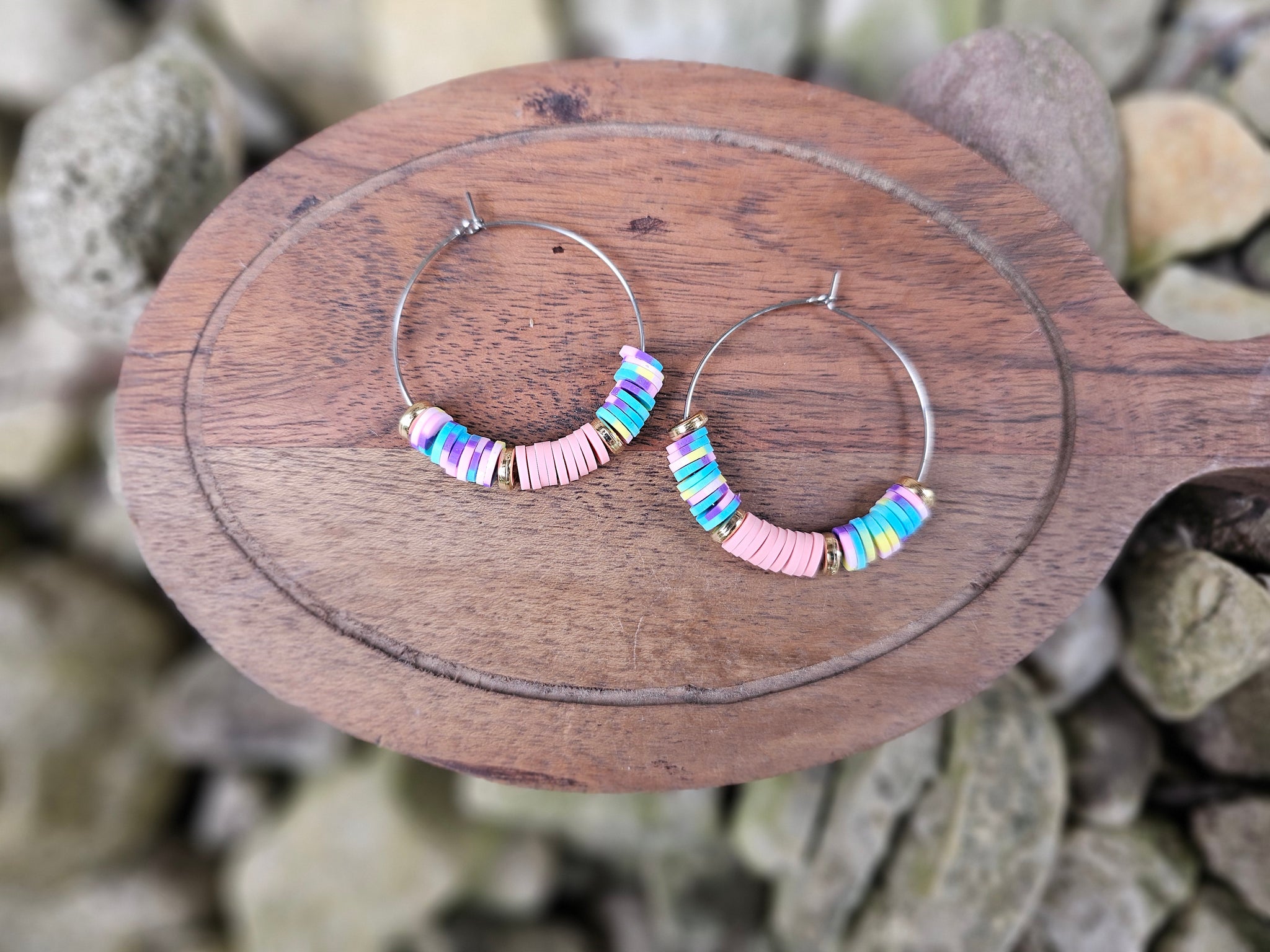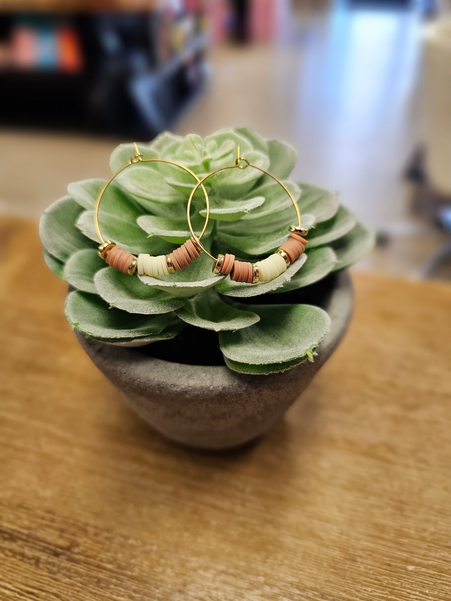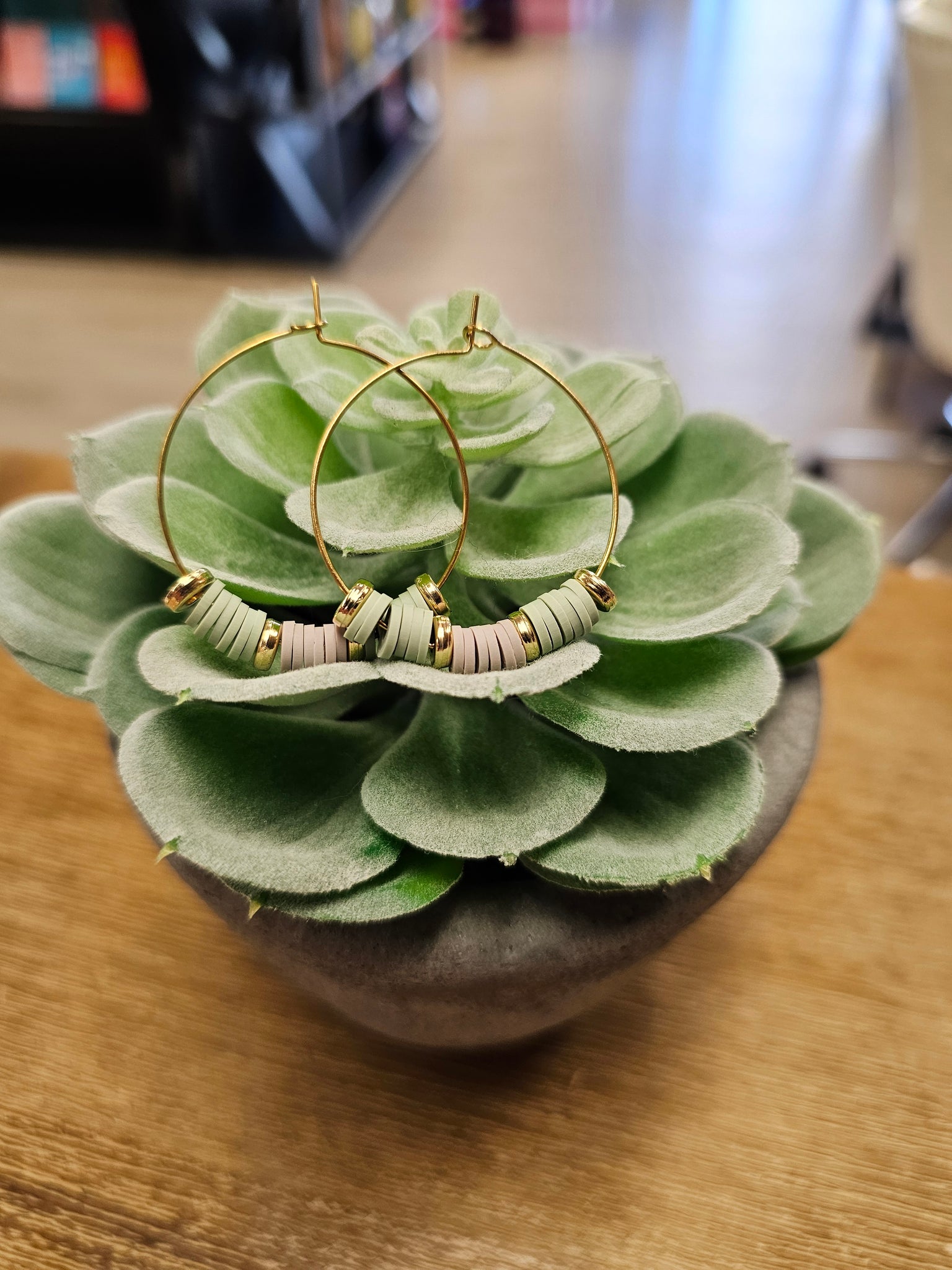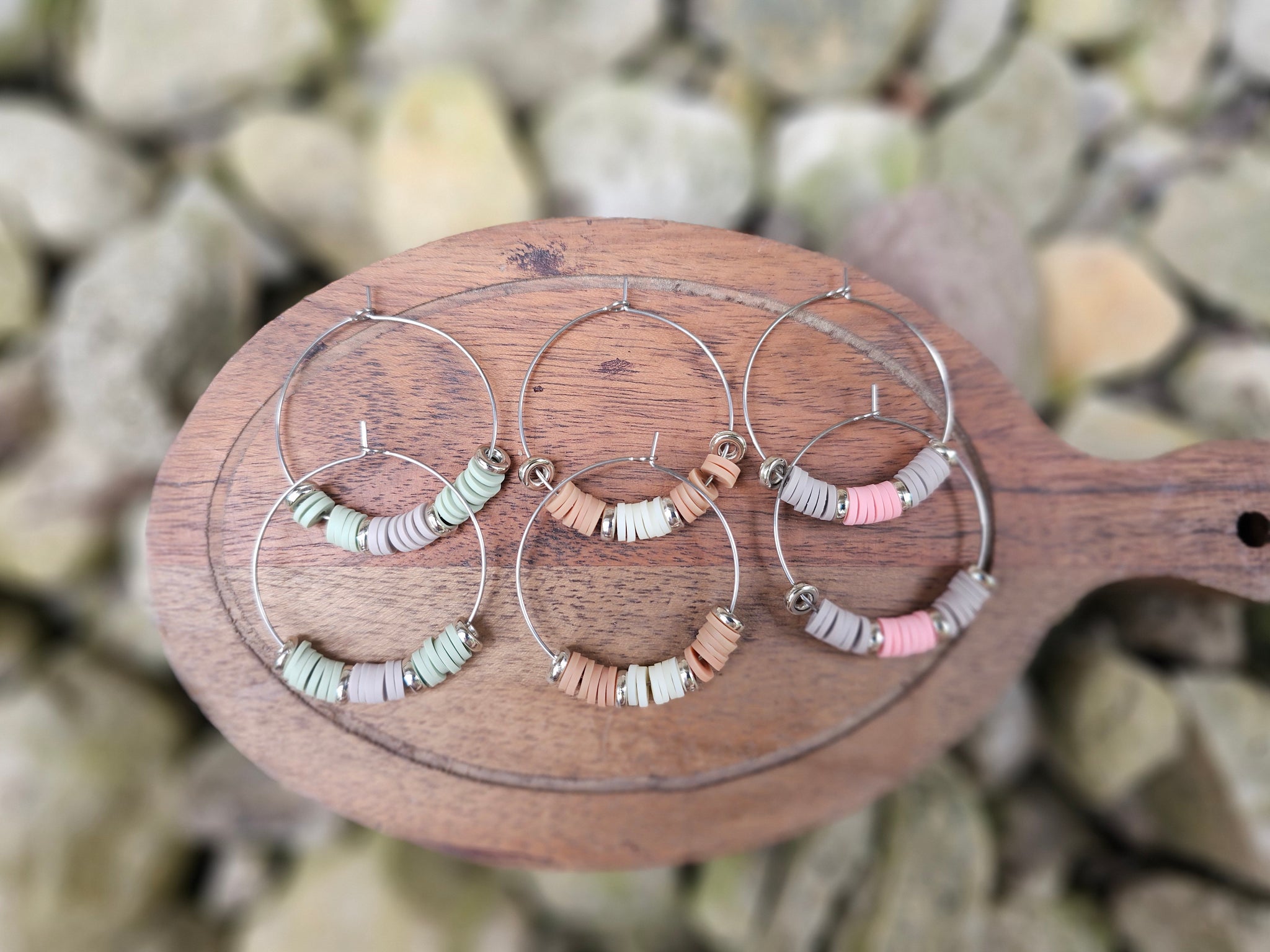 Hypoallergenic Clay Beaded Wire Hoop Earrings - 18K Gold PVD Stainless Steel - Various