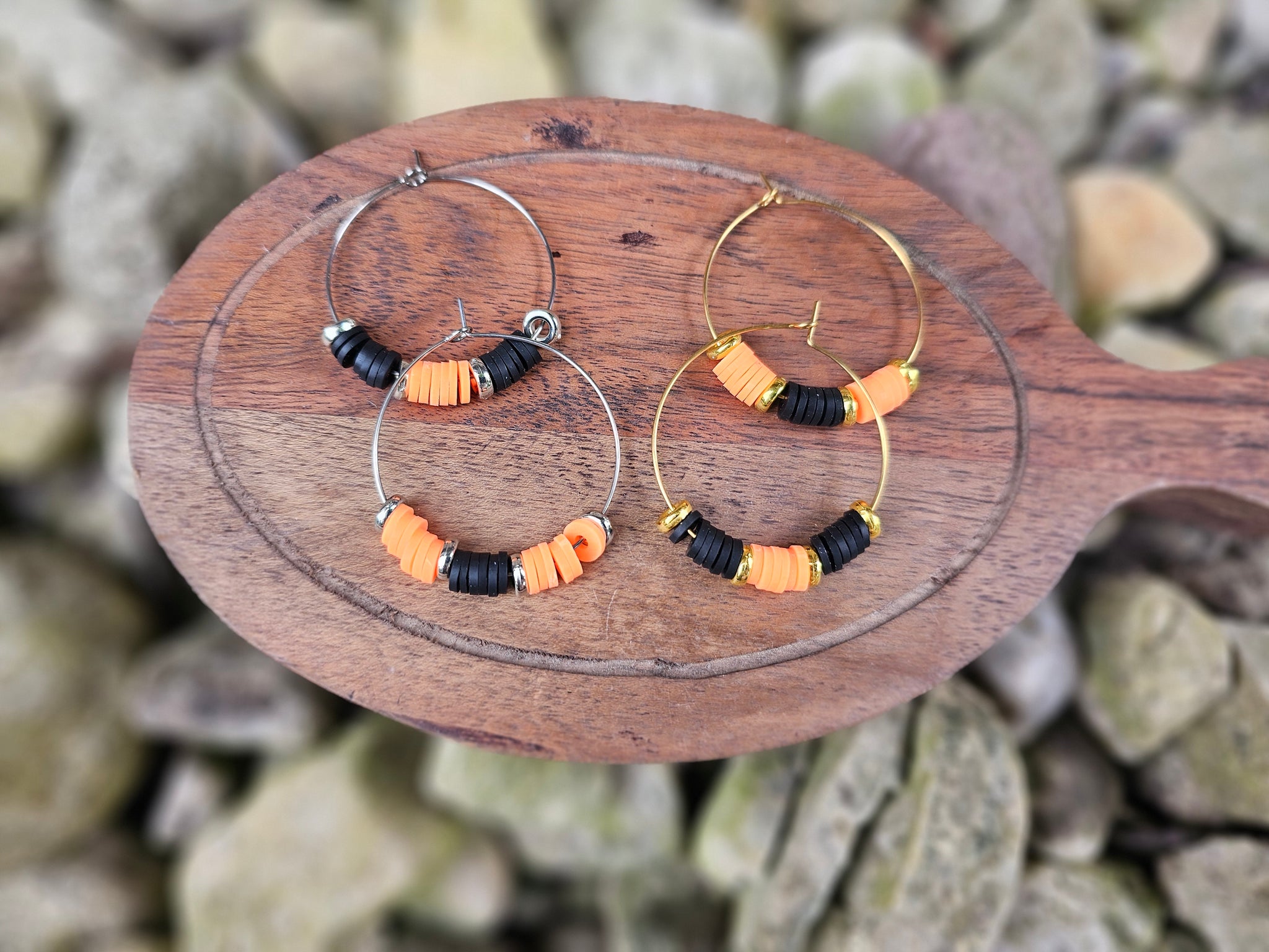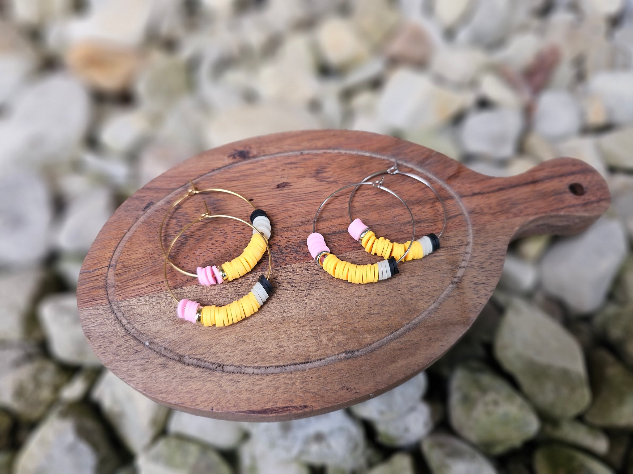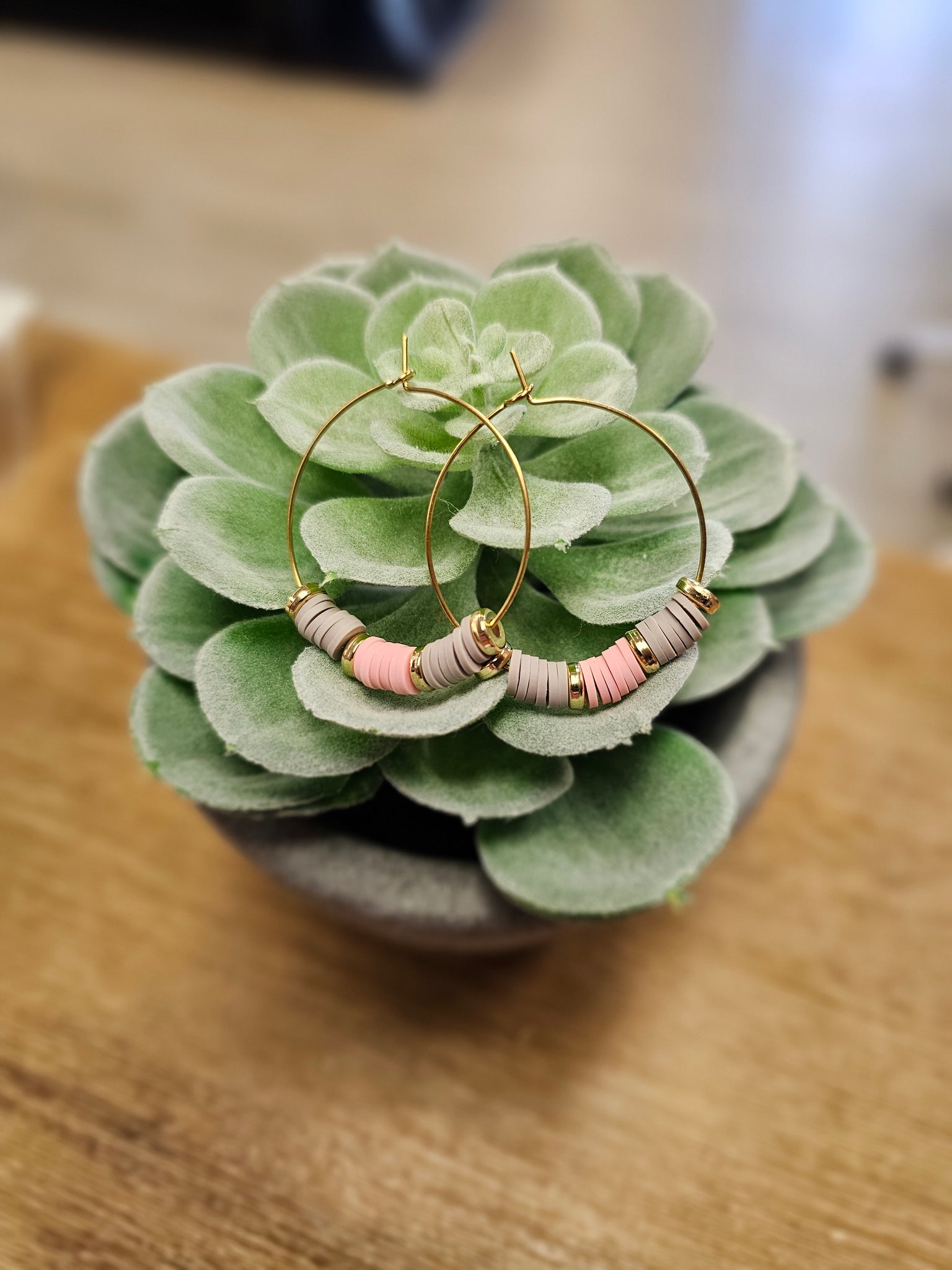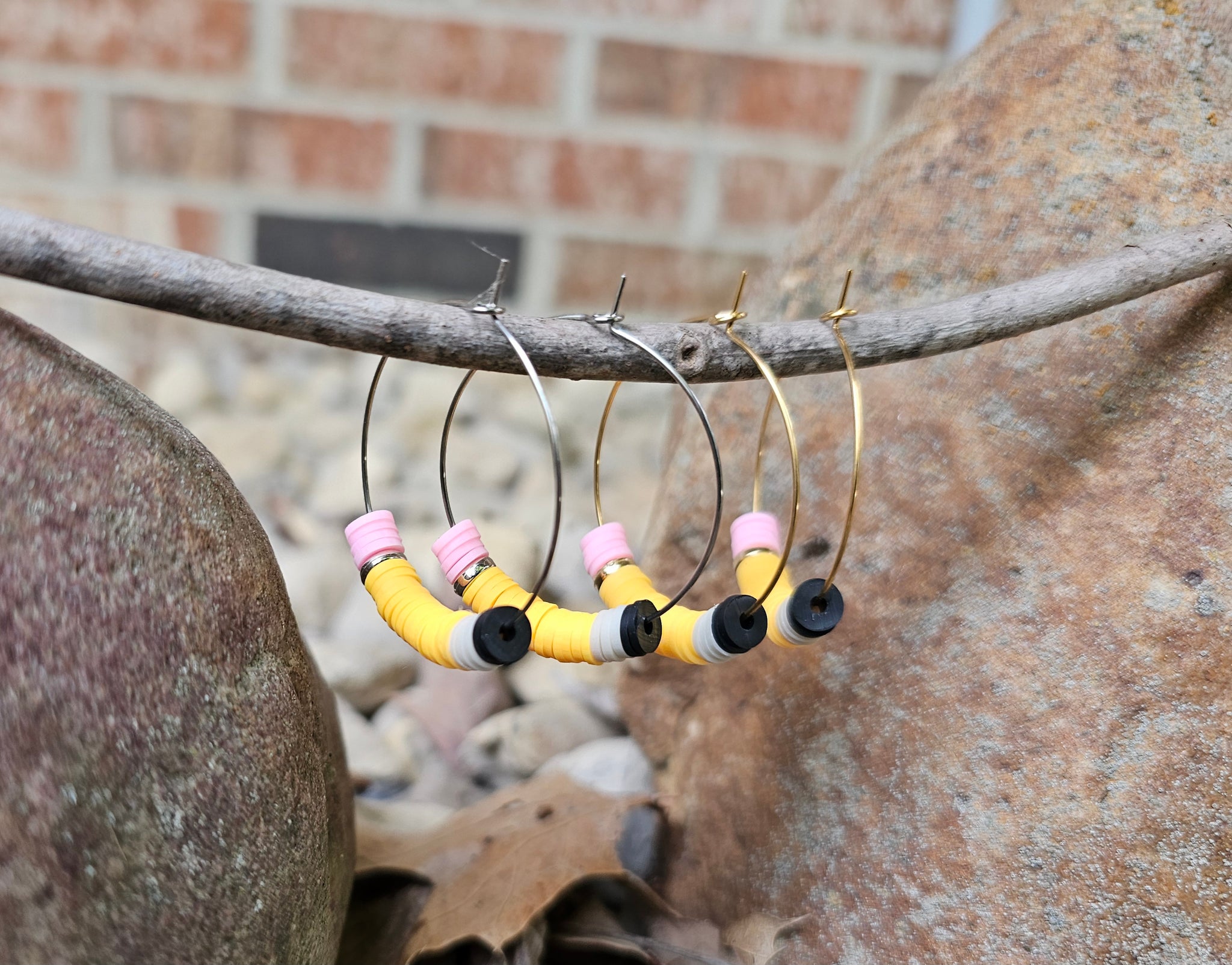 Hypoallergenic Clay Beaded Wire Hoop Earrings - 18K Gold PVD Stainless Steel - Various