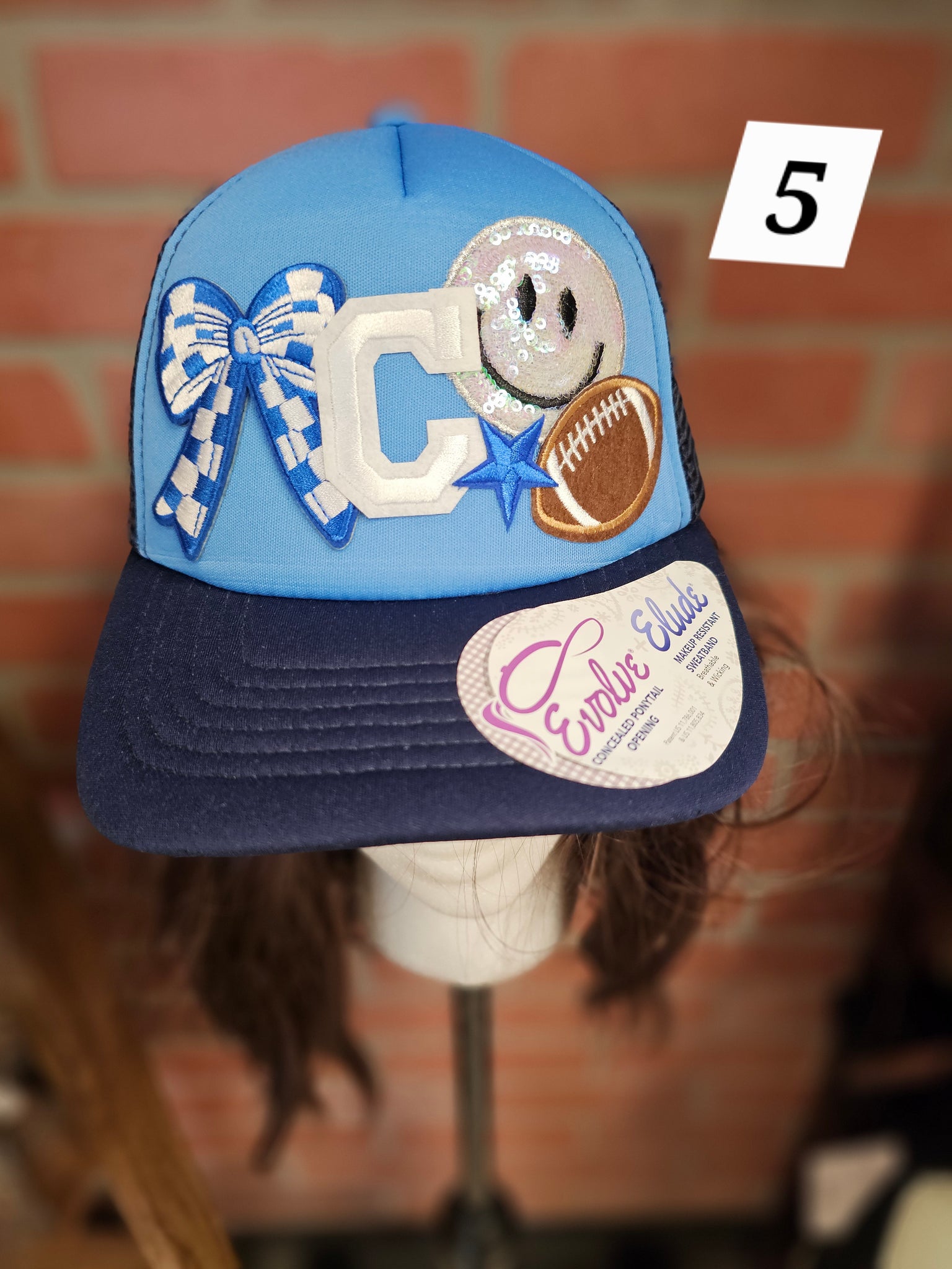 Spirit Wear Hat with Patches - Pre-Made - Various - Trucker - Traditional - Ponytail