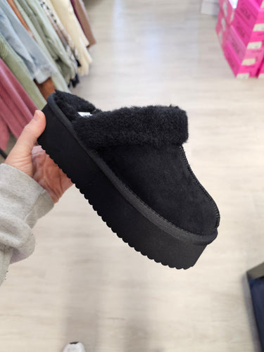 Corkys Cuddle Up Black Faux Suede Mule Slipper