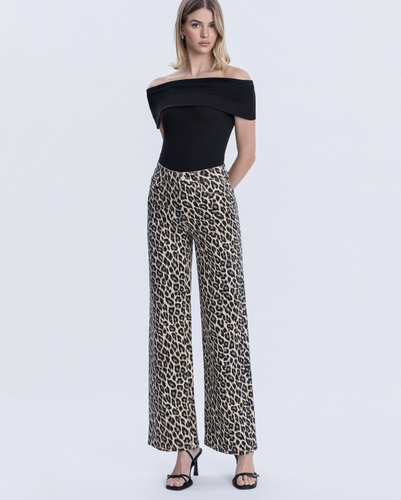 Vervet High Rise Wide Leg Raw Hem Jean in Leopard Print
