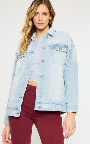KanCan Aaliyah Oversized Light Wash Denim Jacket