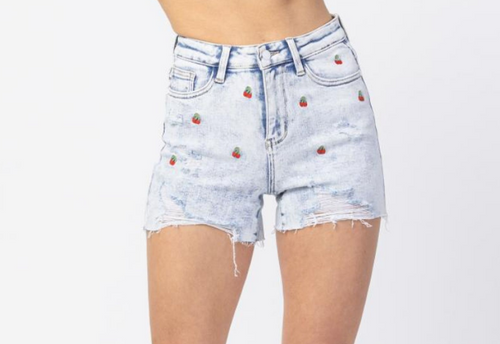Judy Blue High Rise Acid Wash Cherry Shorts