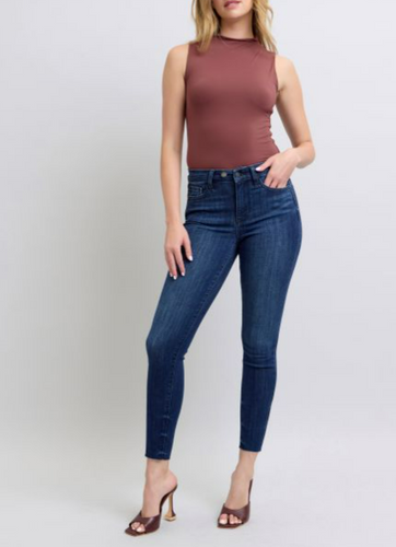 Judy Blue Mid Rise Dark Wash Classic Skinny with Raw Hem