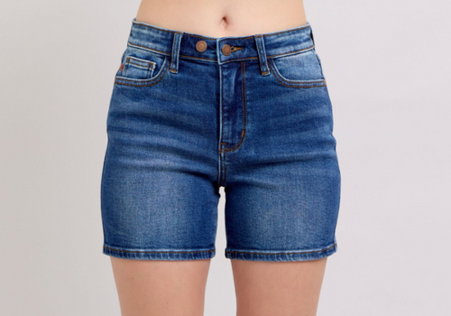 Judy Blue Dark Wash 2 Button Mid Length Dad Shorts