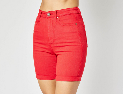 Judy Blue High Waist Tummy Control Bermuda Short in Americana Red