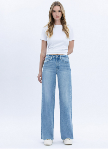 Vervet Olivia High Rise Wide Leg Raw Hem Jean in medium wash