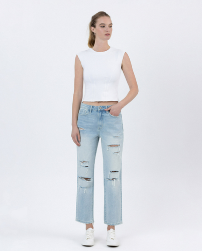Vervet Beverly High Rise Distressed Straight Jean in light wash