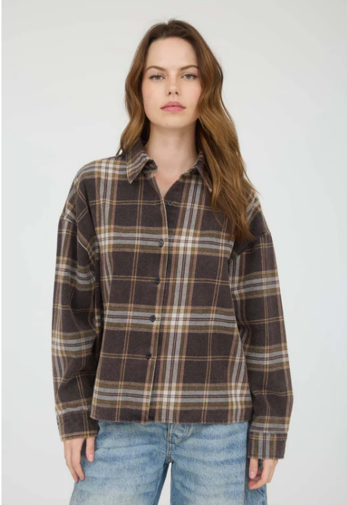 • Neutral Plaid Long Sleeve Button Front Top - Various