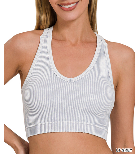 Mineral Washed Ribbed Bralette Tank Top - Various