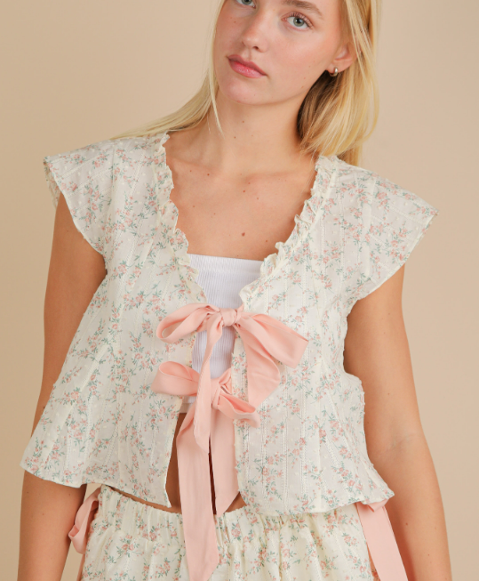 Blush Bow + Floral Tie Blouse + Mini Skort