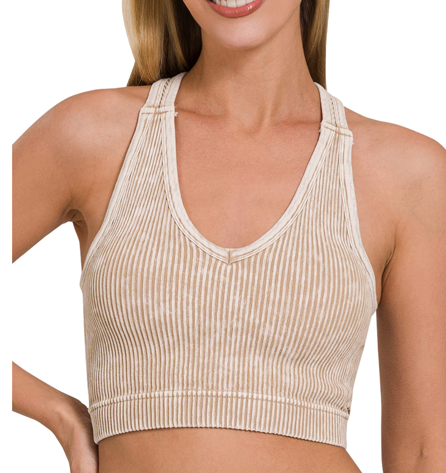 Mineral Washed Ribbed Bralette Tank Top - Various