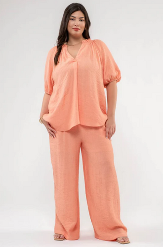Lightweight Wide Leg Pant + V Neck Top in Dusty Peach