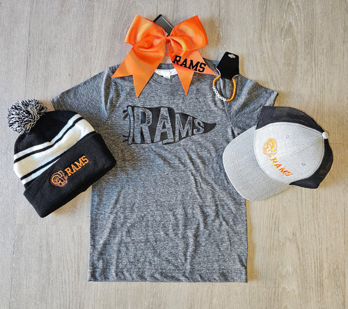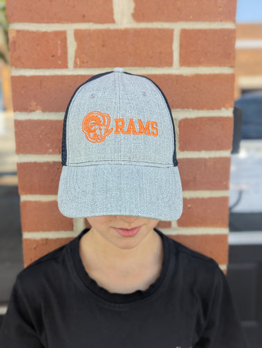 Embroidered Rams Mascot Black Gray + Orange Snapback Hat Gray