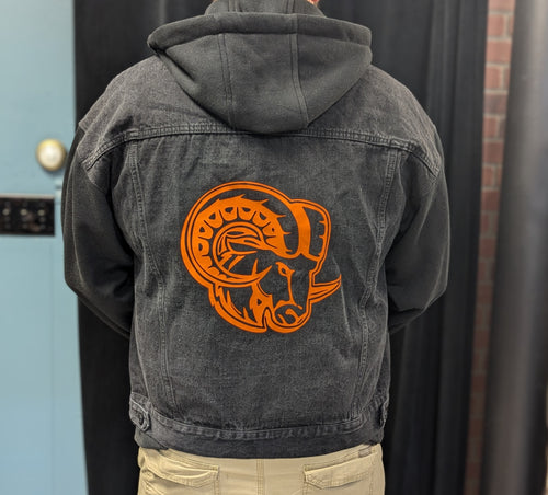 Ram Head - Spirit Wear - KanCan Tori Boyfriend Hooded Denim Jacket in Black - Plus + Reg