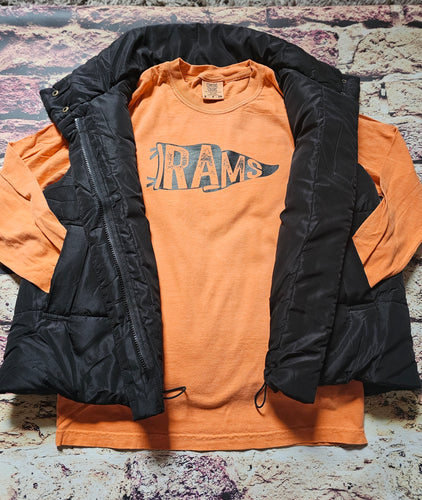 Rams Pennant Long Sleeve Comfort Colors T-shirt in Orange