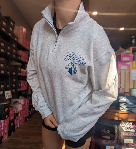 Unisex Distressed St. Peter's School Quarter Zip - Ash Gray