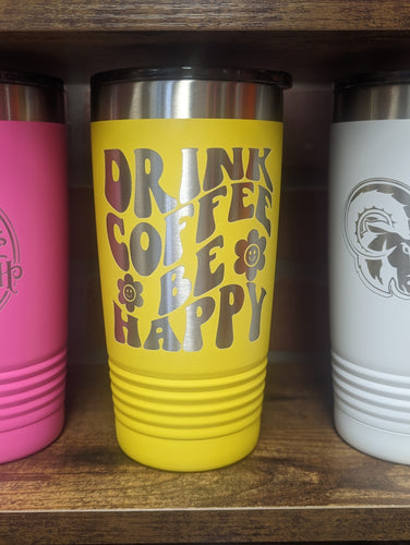 20 oz Engraved Drink Coffee Be Happy tumbler