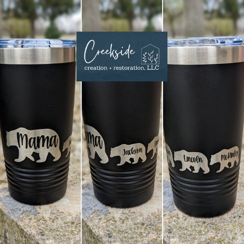 20 oz Tumbler Custom Engraved Mama Bear with Cubs